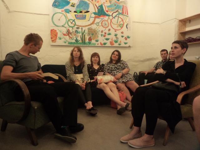 Další stanoviště poskytla kavárna Bajkazyl a kniha Osm hor. Z příběhu osudu toulajícího se vysoko v horách předčítal básník P. Zajíc. Z kavárny to bylo blízko do komunitní cyklodílny Bike Kitchen, kde zazněla ukázka z tvorby nedávno tragicky zesnulého a do programu proto na poslední chvíli začleněného slovenského spisovatele Petera Krištúfka. Z prózy Dom hluchého působivě předčítal autorův krajan T. Chalupský. A jako by tohle společné česko-slovenské čtení zároveň předznamenalo blížící se událost a návštěvníky pozvalo na festival Re:publika 1918–2018, věnovaný významnému jubileu samostatnosti.