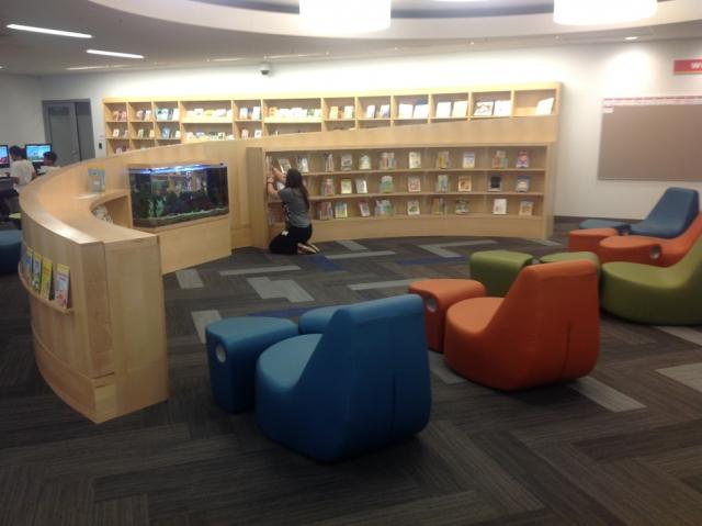 Nepoměr mezi plochou a počtem živých knihovníků byl na naše zvyklosti veliký. Přesto vše fungovalo a knihovníci nesloužili jako hlídači a podavači knih, ale jako zkušení pomocníci v případě, kdy je čtenáři potřebovali. Nejpůsobivější bylo jako vždy oddělení pro děti. Zajímavý byl již samotný vstup hravě rozlišený výškou pro děti a dospělé. Uvnitř pak vládla rozměrná pohoda.