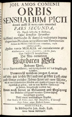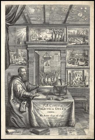 Nejvýznamnějším a nejrozsáhlejším didaktickým dílem J. A. Komenského je Opera didactica omnia (J. A. COMENII OPERA DIDACTICA OMNIA…), čtyřdílný soubor zásadních teoretických i praktických spisů, vydaný latinsky poprvé v Amsterodamu v roce 1657. K nejznámějším dílům Komenského patří Labyrint světa (Labirynt Swěta a Rág Srdce od Amoza Komeniusa Pastýře Ewangelického. Podle Exempláře Berljnského přetisstěn) vydaný v Praze u Jana Samma v roce 1782. K multiplikátům, tedy jako už 4 výtisk se dostalo do sbírky čtyřjazyčné dílo s četnými dřevořezovými vyobrazeními Orbis sensualium pictus (JOH. AMOS COMENII ORBIS SENSUALIM PICTUS QUADRILINGUIS EMENDATUS emendatus Hoc est: Omnium fundamentalium in mundo Rerum, & vita Actionum Pictura & Nomenclatura GERMANICA, LATINA. ITALICA, & GALLICA…) v norimberském vydání Johanna Andrease Endtera z roku 1760. Orbis pictus patří k nejčastěji vydávaným Komenského knihám, ve sbírce je zastoupeno cca 40 výtisky.