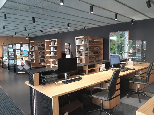 Štěstím bylo, že prostory nebyly zařízeny a mohly být využity služby architektky Veroniky Novákové Rehortové z architektonické kanceláře Knesl Kynčl architekti, s.r.o. z Brna. Spolupráce s paní architektkou byla velmi dobrá. Po vysvětlení našich představ a záměru, navrhla uspořádání interiéru. Pobočka nekopíruje ve službách Turistické informační centrum Kroměříž, které je umístěno v centru města v budově radnice. Je zaměřena především na informační služby a odtud pochází i její název.