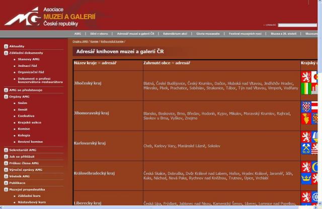HARTMANOVÁ, Květa [sest.]. Adresář knihoven muzeí a galerií ČR. Praha 2007, 239 s. Aktuální podoba adresáře je k nahlédnutí na stránkách Asociace muzeí a galerií ČR pod záložkou oborové komise knihovníků (www.cz-museums.cz).