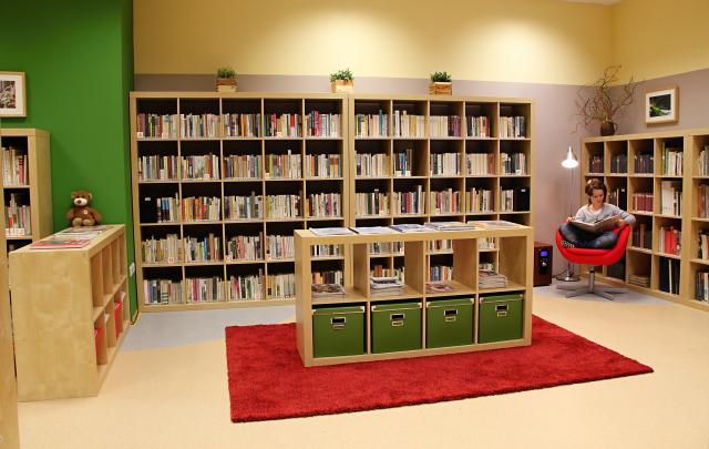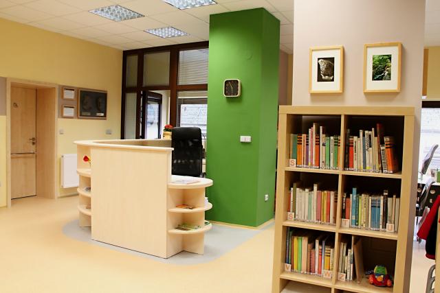 Knihovna je rozdělena na část pracovní, kde se děti mohou věnovat různým tvořivým činnostem, internetový kout se dvěma počítači, dětskou četbu s místem pro hraní a čtení, místo pro specializaci této knihovny, což je literatura regionu a knihy s četbou pro dospělé čtenáře s pohodlným místem pro čtení.