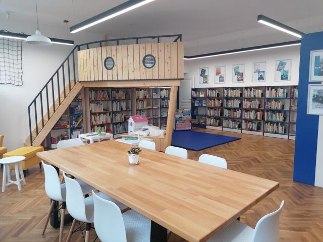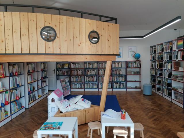 Dominantní prvek dětského oddělení bude vplouvající loď, která v přeneseném smyslu představuje pro čtenáře nová knižní dobrodružství. Nejmenším čtenářům bude určena velká hrací žíněnka a pro nejstarší děti „teen“ koutek z bývalého přilehlého skladu knihovny. Pro dospělé čtenáře vznikne odpočinkové místo a pro společné aktivity bude sloužit velký stůl. V zadání jsme počítali také s venkovní terasou, kterou doplní specialita pana arch. Hořavy – desková hra scrabble v nadživotní velikosti. Služby knihovny vylepší i samostatná malá kuchyňka.