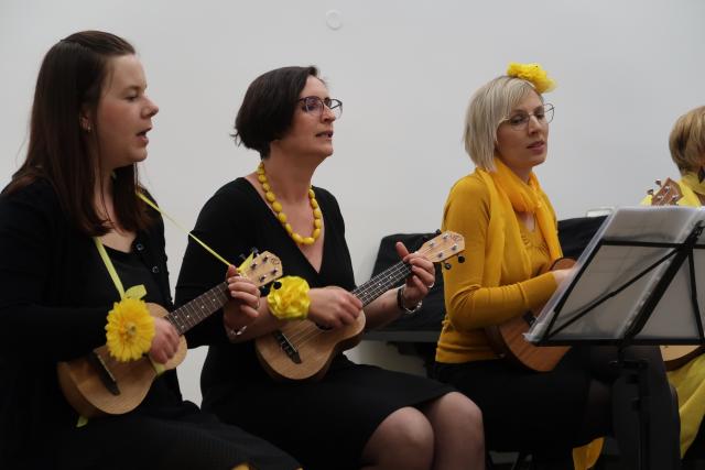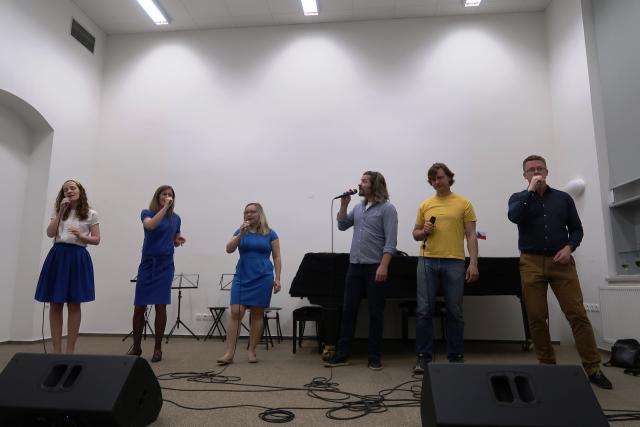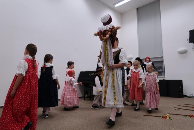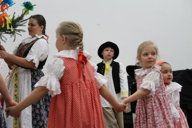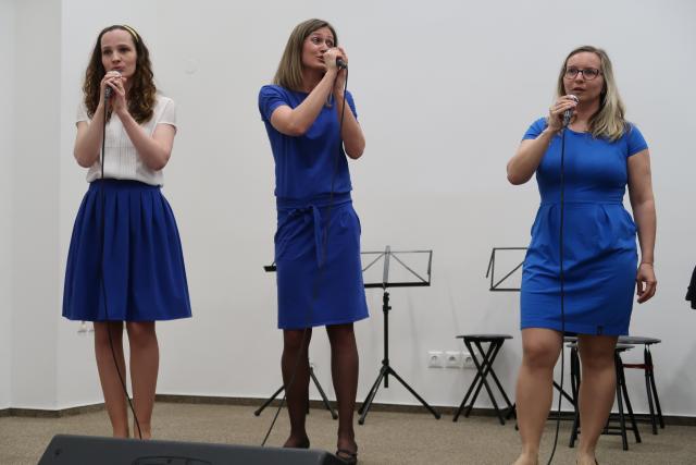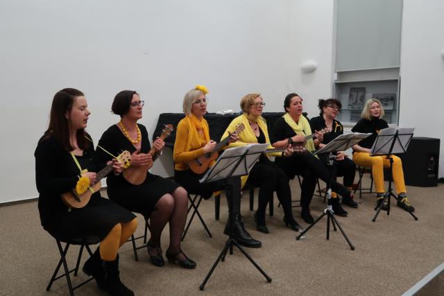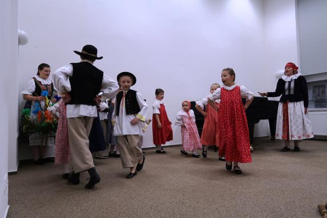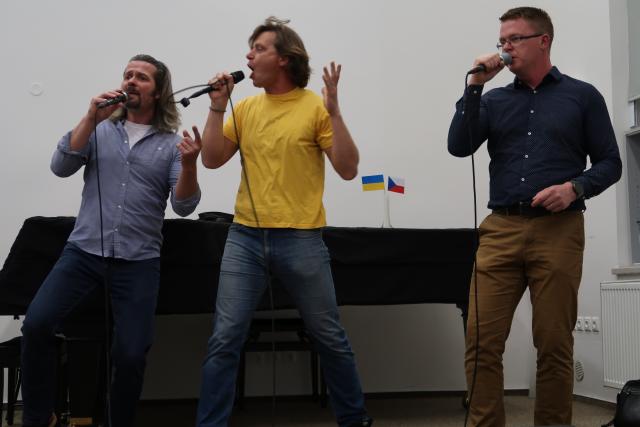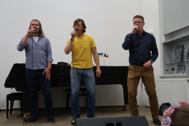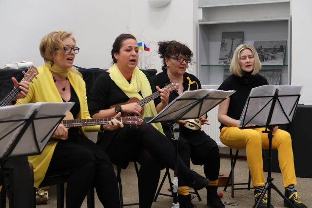 Zaplněnému sálu se na začátek představil Dětský folklorní soubor Klebetníček. Dámské ukulele uskupení BabyBanda tentokrát do svého repertoáru zařadilo i dvě ukrajinské písně. Sálem zněl sborový zpěv, který se tu a tam zachvíval slzami. Po malém občerstvení tradičními českými velikonočními dobrotami, které připravily dobrovolnice, vystoupil vokální sextet Za5[1]. Všechny soubory vystoupily bez nároku na honorář. Mnozí hosté i po skončení oficiálního programu zůstali, seznamovali se, povídali si. Dobrá věc se podařila. Knihovna je informační společnost, proto jsme nemohli pominout ani tuto naši roli. Na Facebooku jsme zřídili skupinu Čeština ve vyškovské knihovně / Чеська мова у Вишківській бібліотеці, ve které sdílíme vše, co by mohlo být nejen vyškovským Ukrajincům prospěšné.