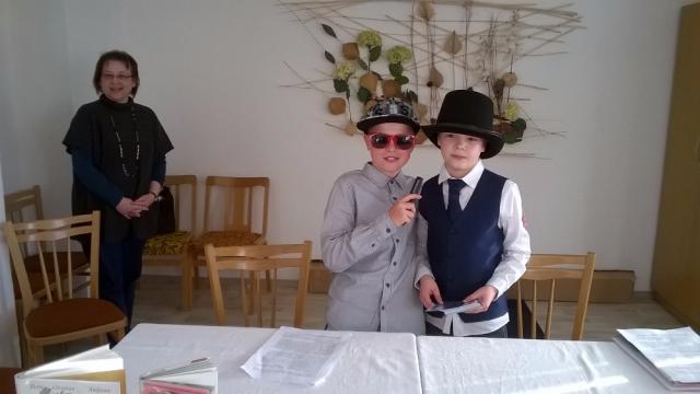 Obec Šebrov má knihovnu velmi malou a je problém v ní větší počet dětí umístit. Zahájení bylo tedy organizováno v zasedací místnosti, kam za dětmi přišel sám pan Andersen (foto1). V rozhovoru všem prozradil spoustu zajímavostí ze svého života. Děti si pak poslechly pohádku, kterou jim přečetla paní knihovnice (foto2). Další program pokračoval v prostorách školy, kde celá skupina také nocovala.