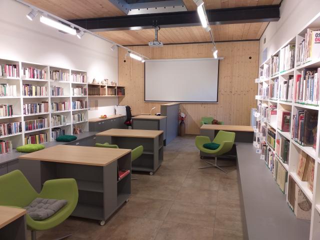 Kromě sálu s divadelním pódiem a světelnou technikou, přísálím i technickým zázemím bylo pamatováno na také na prostor pro knihovnu a galerii. Vstup do knihovny je bezbariérový přímo z parkoviště. Vnitřní prostory pak navazují na celé Kulturní centrum, jsou oddělené dveřmi. V případě větší knihovnické akce je možné vše propojit. Vzhledem k tomu, že v roce 2022 nedostala obec dotaci na vybavení, bylo rozhodnuto, že další etapa bude realizována až v roce 2023. V tom roce opravdu získala obec potřebnou dotaci od Jihomoravského krajského úřadu. Výroba nábytku byla zadána firmě Linea Blansko.