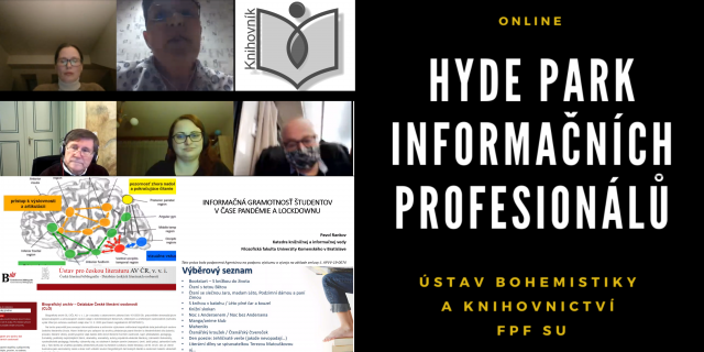 Hyde Park informačních profesionálů je dnes už tradiční prostor pro setkávání studentů knihovnictví Ústavu bohemistiky a knihovnictví Filozoficko-přírodovědecké fakulty Slezské univerzity v Opavě s vybranými odborníky z praxe. Pandemická situace v minulém a letošním roce a on-line výuka paradoxně přinesla také možnost otevřít akci široké veřejnosti a i do budoucna plánujeme, aby otevřená a dostupná všem zájemcům zůstala.