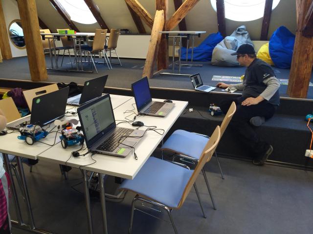 Vybavení Půdy roboty je koncipováno tak, abychom měli pro každou věkovou skupinu, od předškoláků po dospělé něco pro práci ve skupinách – Bee/Blue bot, Ozobot, Lego WeDo, mBot, micro:bit, Arduino. Díky podpoře Meet and Code jsme pro právě končící kampaň CodeWeek získali programovací deskovou hru Scottie go! Na ukázku pak chceme pořizovat také jednotlivé kusy na seznámení a „na osahání“ pro ostatní zájemce z řad učitelů nebo vedoucích kroužků. Pro ně také pořádáme víkendové akce. Koncem října proběhla akce pro studenty knihovnictví a členy KISK a o týden později Roboakademie pro učitele a vedoucí kroužků zaměřená na představení možností využití robotiky v knihovnách a ve výuce. Kromě prezenčních výpůjček hledáme cestu, jak umožnit některé roboty zapůjčovat také externě, tak aby uživatelé mohli pokračovat na svých projektech i po zavírací době.