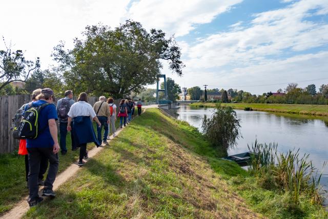 Svižnou chůzí, někteří na kolech, jiní dokonce autem, jsme se zastavili v ulici Za Tratí, abychom se letmým pohledem podívali na rodný dům spisovatelky Aleny Bartošíkové. Posluchači měli možnost seznámit se s nedávno otevřenou 13. komnatou autorky, kterou napsala v knize „Z listů památníku." Cituji: „Babička ze strany mého táty, říkali jsme jí veselská, nade mnou držela celý život ochrannou ruku, nezdenická babička Františka k nám vnoučatům žádné city neprojevovala, nebo si nic takového nepamatuji. Co mi nedopřála ona, to mi vrchovatými hrstmi dávala druhá babička veselská. Babička mi dopřávala ten opojný pocit, jaké je to být alespoň na chviličku bohatý. Tenkrát jsem o tom byla přesvědčena a ten pocit ve mně zůstává". Autorce bylo osm a půl roku, když maminka zemřela.