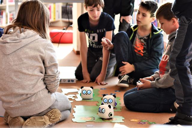 Na začátku naší cesty jsme se sami učili, hodně zkoušeli, testovali a nabírali sebevědomí. I proto jsme všechny novinky představovali nejprve v uzavřených skupinách – především s dětmi v klubu CoderDojo a školní družinou jedné místní základní školy, která začala pravidelně chodit na lekce s ozoboty. Ověřili jsme si, na co děti dobře reagují, které aktivity je baví a které naopak moc ne. Pandemické roky daly našim aktivitám trochu jiný směr a nabídly nové možnosti – vyzkoušeli jsme si tak práci v online prostředí, a protože jsme se robotů nechtěli úplně vzdát, také jejich programování na dálku. Rok 2021 byl rok, kdy se naše nabídka robotů rozrostla nejvíce a zároveň s uvolněním epidemických opatření a postupným návratem návštěvníků do knihovny nám začala připadat škoda nechávat roboty většinu času zamčené ve skříni a vytahovat je pouze na schůzky CoderDojo nebo lekce pro školy a družiny. Začali jsme tedy pořádat Roboherny – pravidelná páteční odpoledne jednou za 4 týdny. Chtěli jsme si ověřit zájem veřejnosti o tento druh aktivit a také dát dětem možnost ukázat rodičům, co viděli v knihovně se školou, „když tam byli na roboty“. K naší velké radosti se ukázalo, že roboti baví nejen nás, ale také naše uživatele.