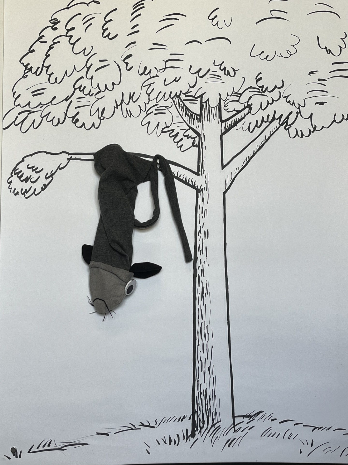 Příběh vyprávíme chronologicky, podle klíčových scén. Pro lepší názornost pracujeme s jednoduchou loutkou vačice (vyrobeným maňáskem, měl by mít výrazný úsměv), kterou zavěsíme na namalovaný strom, a ilustracemi z knihy.