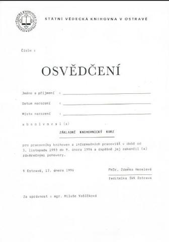 Nedostatek oborově vzdělaných knihovníků byl v regionu značný, a proto vědecká knihovna zareagovala novým akreditovaným rekvalifikačním kurzem, který obsahoval 160 hodin odborné výuky, byl ukončen závěrečnými zkouškami a měl dva obory – odborný pracovník knihovny a odborný pracovník v informacích. Knihovna dále připravila od roku 2001 dvoudenní knihovnický kurz pro knihovníky školních knihoven. V současné době navazujeme na oblíbené kurzy pro školní knihovníky, spolupracujeme s Místním akčním plánem rozvoje vzdělávání ORP Ostrava II, se kterým chystáme projekt na podporu školních knihoven a knihovníků.
