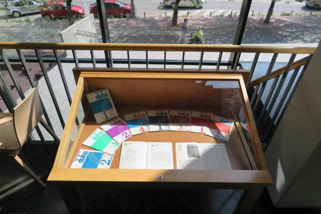 V prosklených vitrínách, které doprovázejí výstavu, jsou jednak představena jednotlivá čísla časopisu s jejich grafickými obálkami, také návštěvníci uvidí, jak vypadala sbírka Jiřího Mahena Duha, která byla vydaná před sto lety, v roce 1916 v nakladatelství Frant. Borový. Ještě si mohou přečíst, co o vzniku Duhy psala kronika, a jak časopis hodnotil denní tisk.