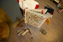 Různě výrazné součástky, díly a plechové pláty nalezené v kontejnerech fabriky na lodě nás inspirovaly a postupně udávaly vzhled nové knihovny. Zcela obroušené staré brusné kotouče ozdobily náš výpůjční pult, z kovových pilin nacpaných ve sklenicích se staly lampičky, z drátů a kabelů výstavní lanka, v šatních skříňkách pro dělníky skladujeme deskové hry a z pracovního oblečení místních podniků jsme ušily polštáře na gauč. Ačkoli část našich představ a nápadů přivedli k životu místní řemeslníci, i my samy jsme se musely naučit pracovat s vrtačkou a rozpoznat hmoždinky do sádrokartonu od těch do zdiva.